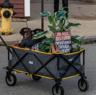 Several people had multiple carts loaded and pulled them away from the encampment headed to downtown Manchester.